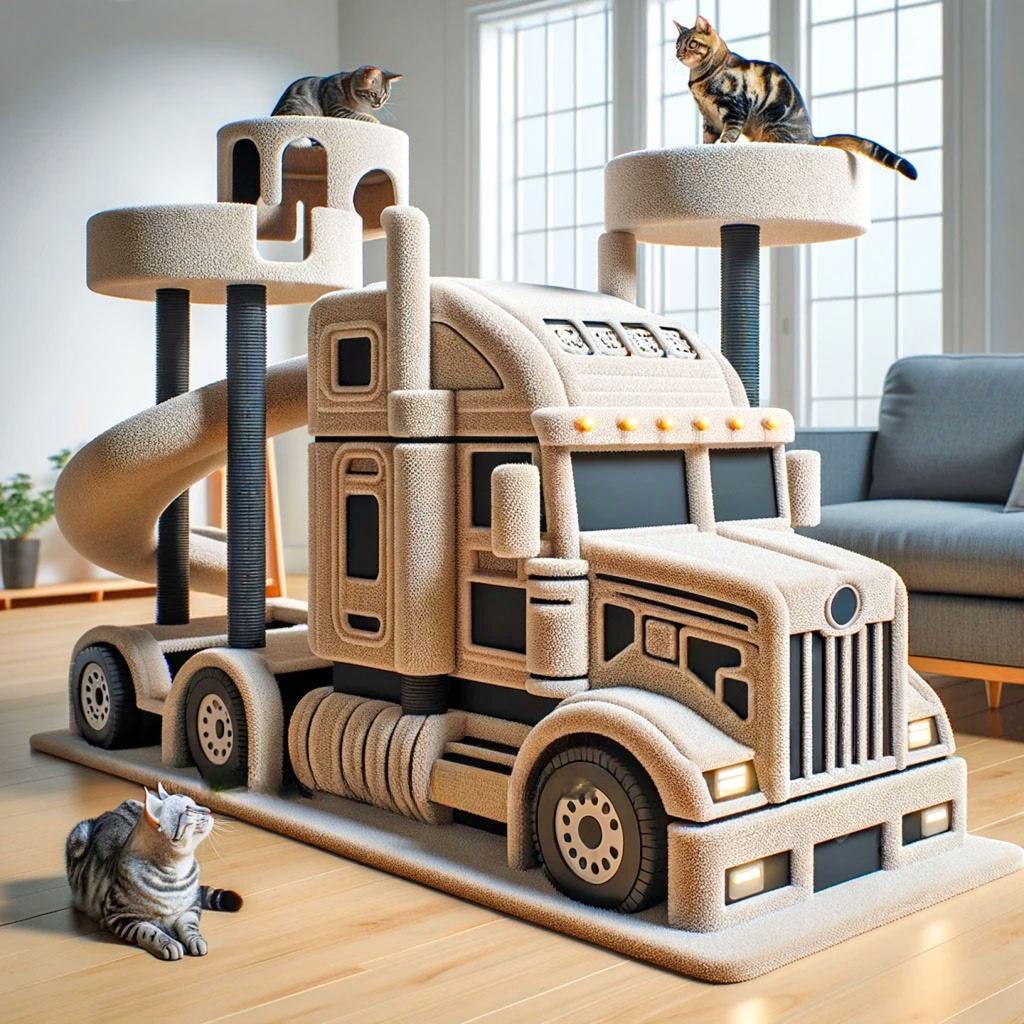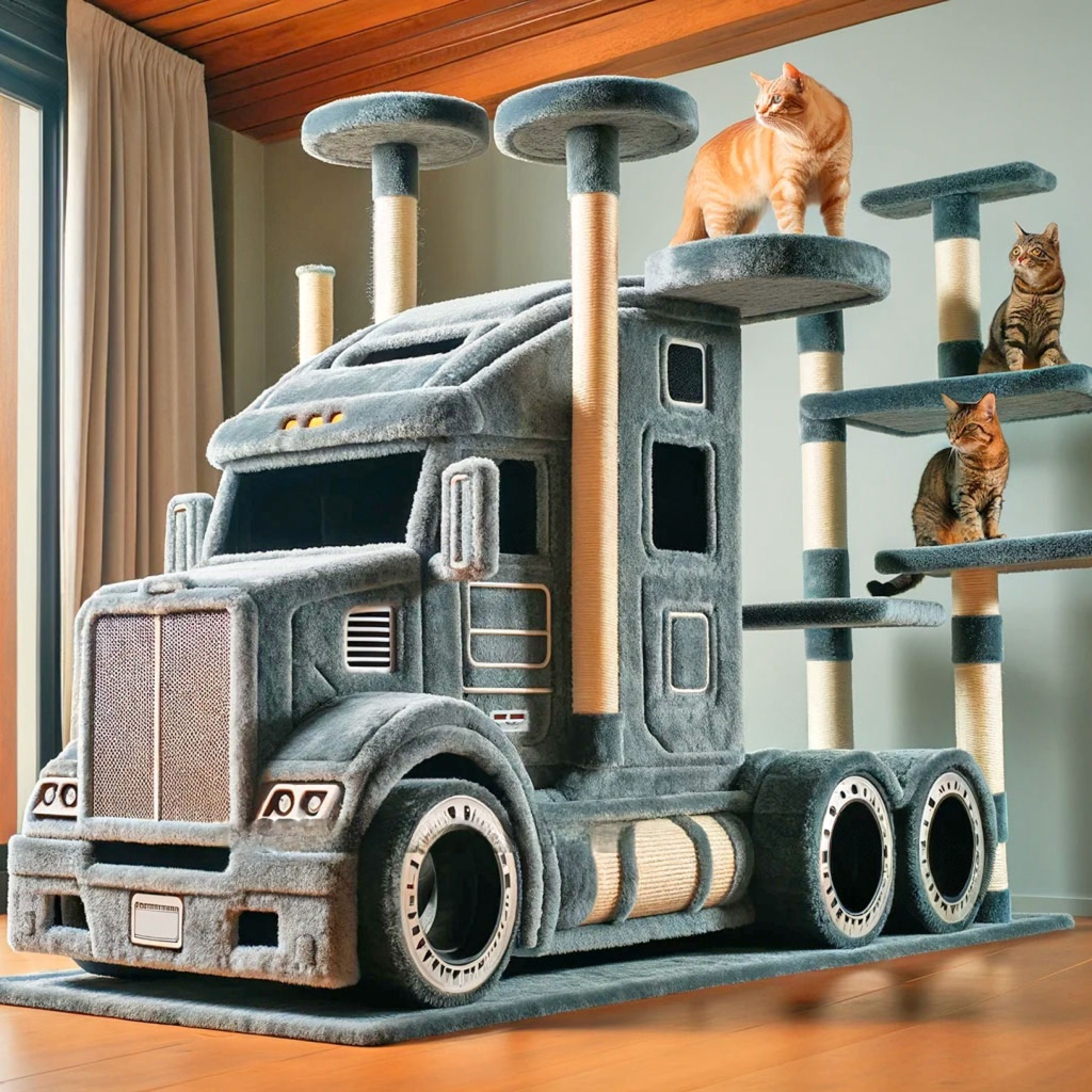 Ever looked at a semi-truck and thought, “My cat would love to scratch that”? No? Well, get ready to be amazed by the latest in feline furniture innovation: the semi-truck cat scratch trees.